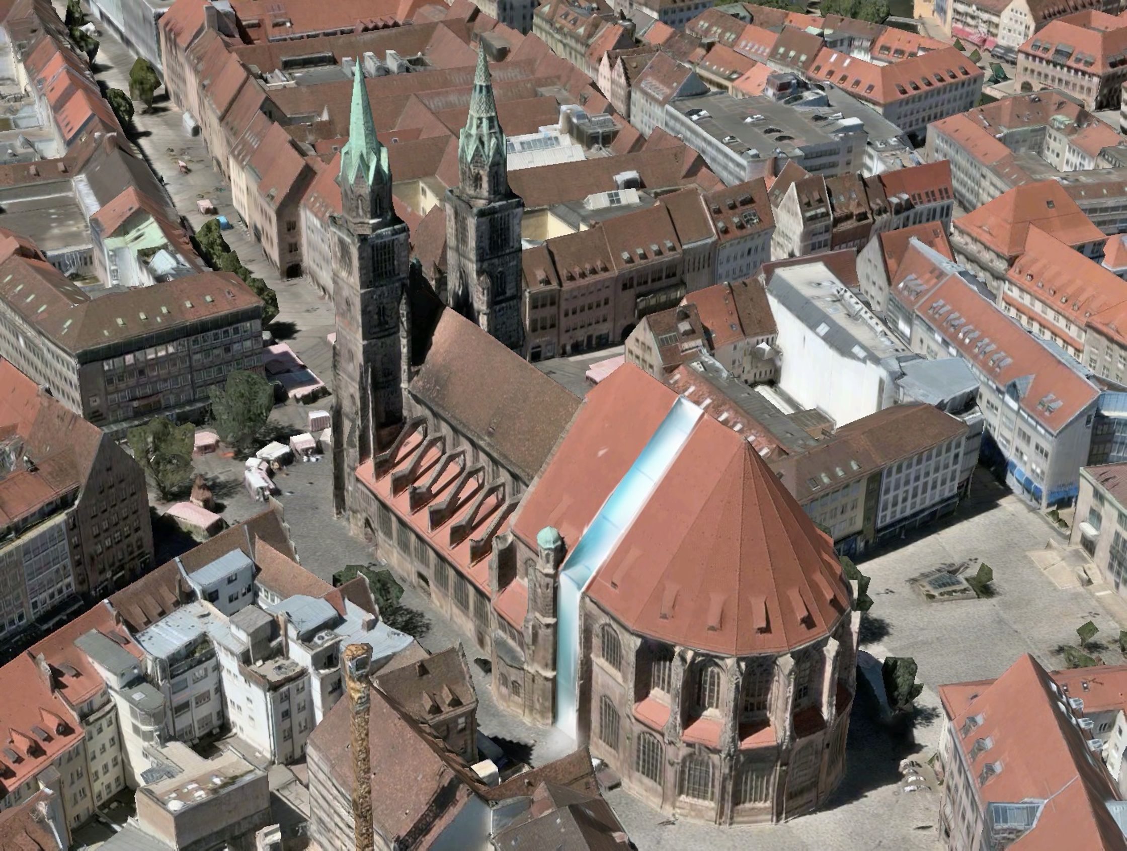 Die Lorenzkirche ist eine der zwei Hauptkirchen im Nürnberger Stadtbild. Sie ist das prägende Bauwerk auf der Südseite der Nürnberger Altstadt und gleichzeitig Namensgeber dieses Altstadtteils. Genau wie ihre Schwesterkirche St. Sebald, ist die Lorenzkirche in der Blütezeit von Nürnberg (zwischen 13.- 16. Jhdt.) als eine Bürgerkirche auf- und umgebaut sowie ergänzt worden.